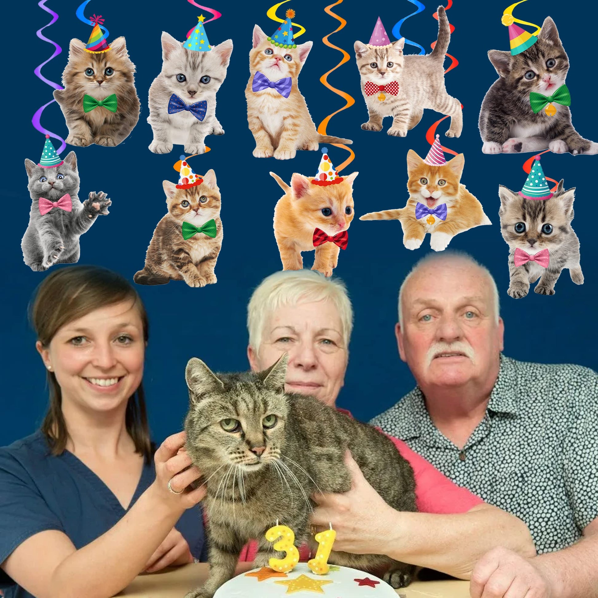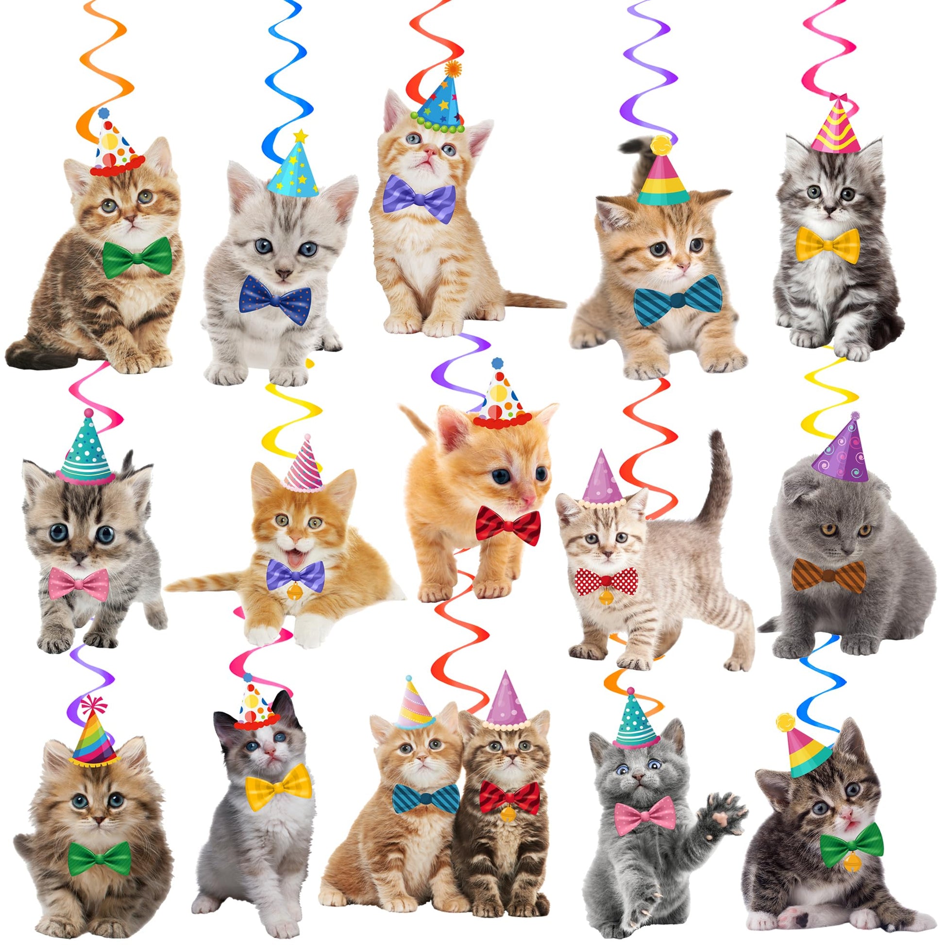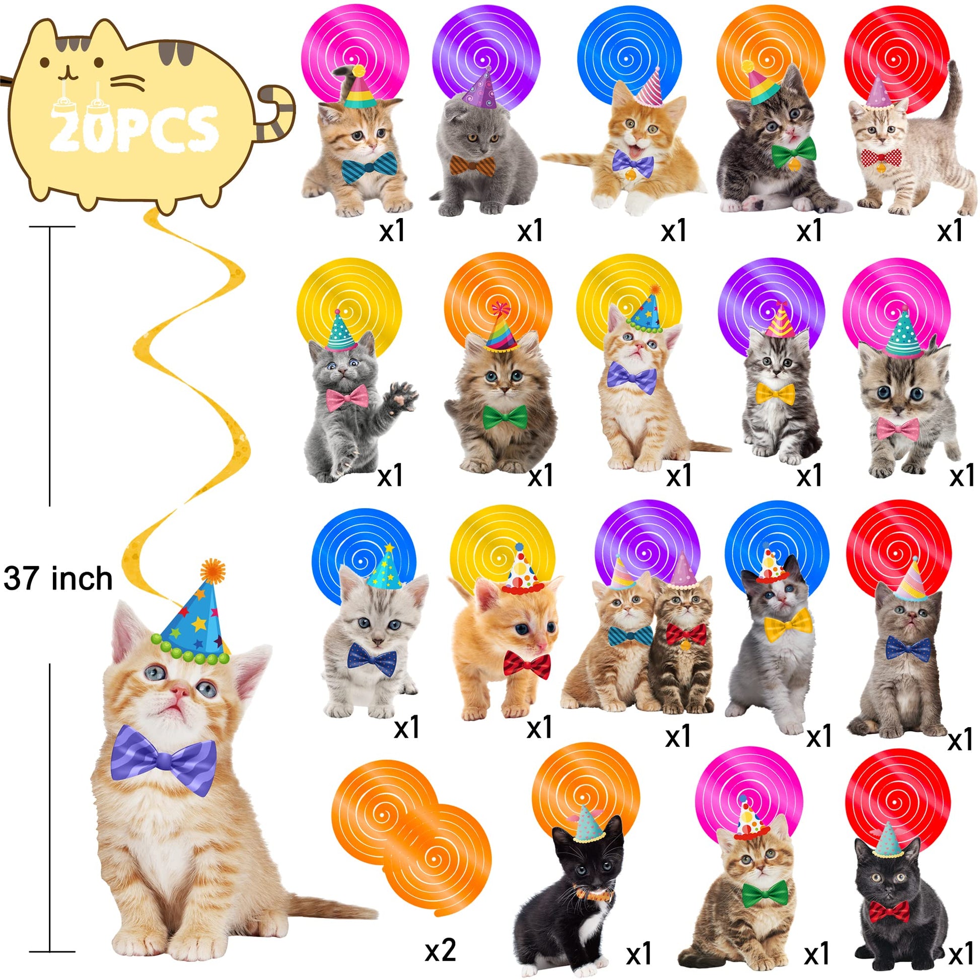 20Pcs Cat Hanging Swirls Decorations Cat Kitten Theme Party Decorations for Birthday Baby Shower Party Favors Ceiling Hanging Decor