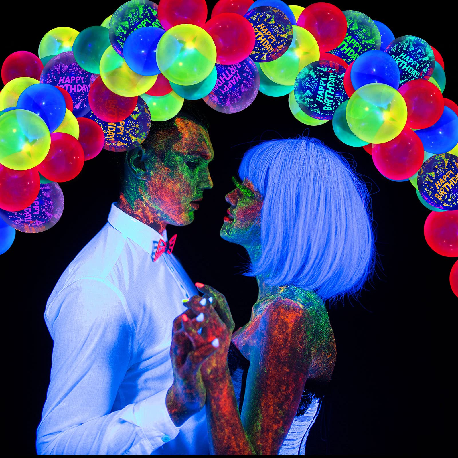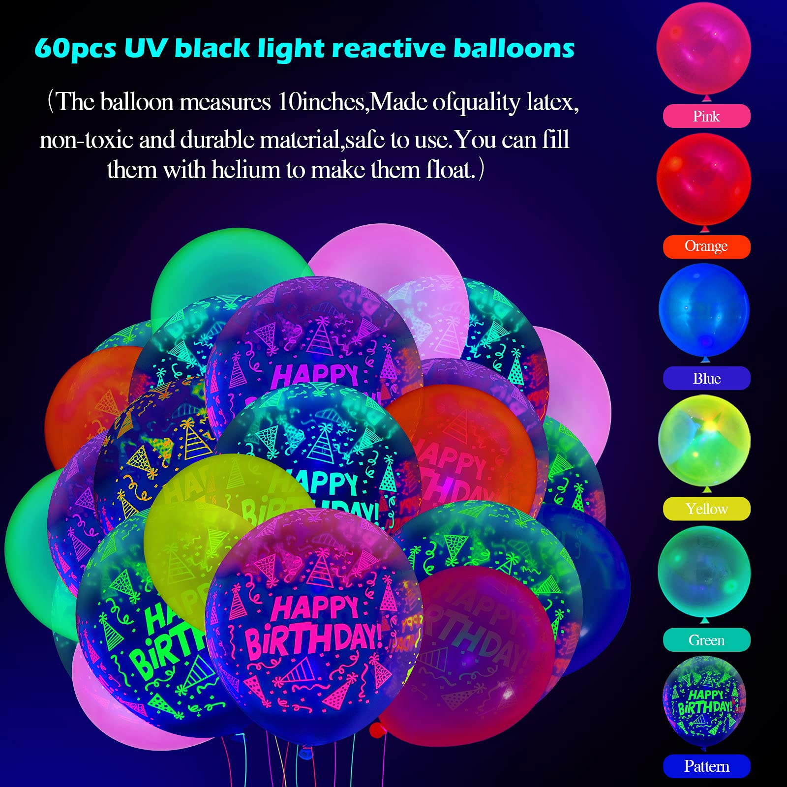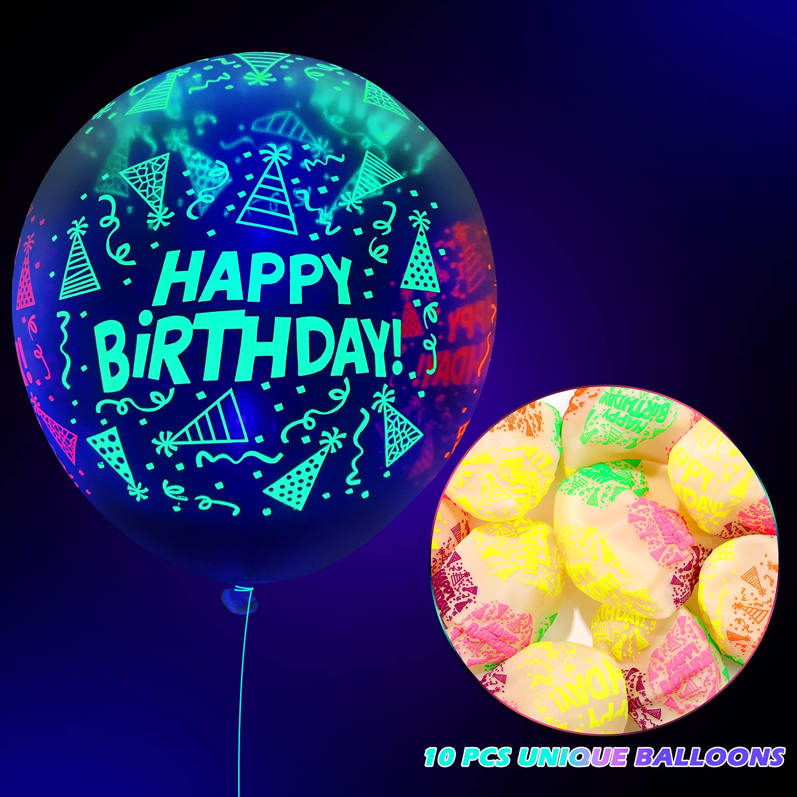 🪩 60-Piece Neon Birthday Balloons (12”)