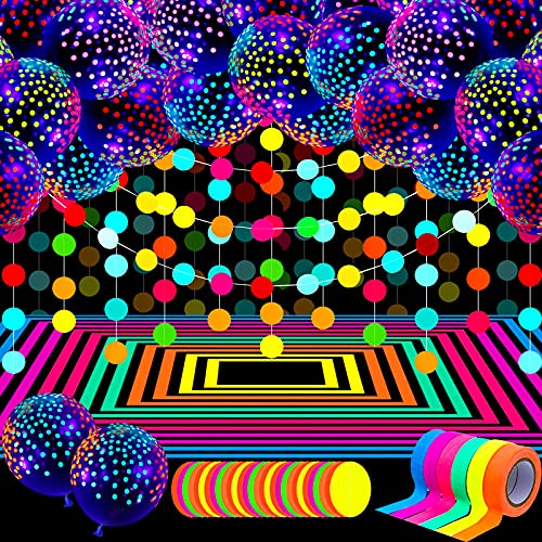 Looking for party decor with versatility and punch? This trio combo gives you balloons, garlands, and nearly 100 feet of UV-reactive neon tape for ultimate room transformation. Tape your walls, stream your ceilings, and fill the air with glowing orbs of fun.