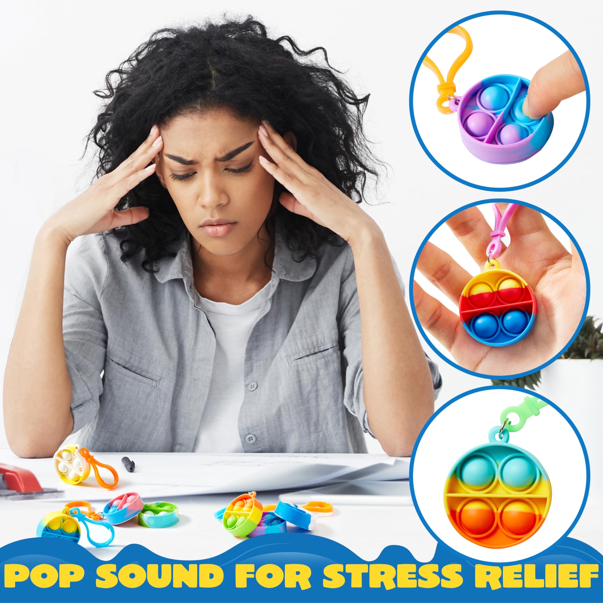 ๐ 30-Pack Round Pop Fidget Keychains โ Colorful, Stress-Relieving Fun