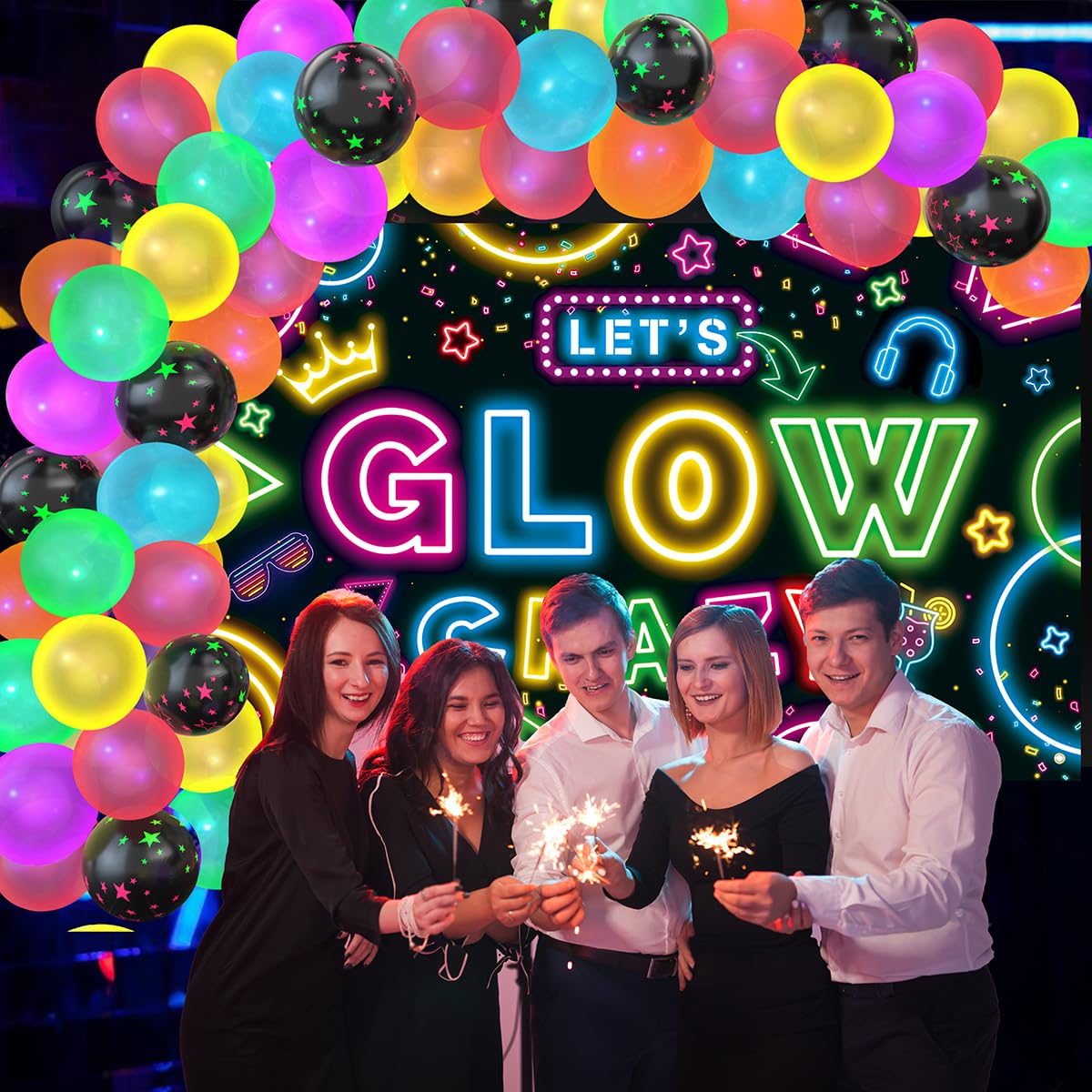 🎧 Let’s Glow Crazy Set – Balloons + Backdrop for Instant Vibes