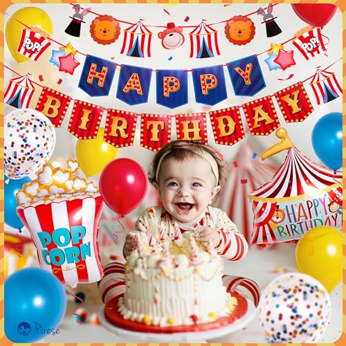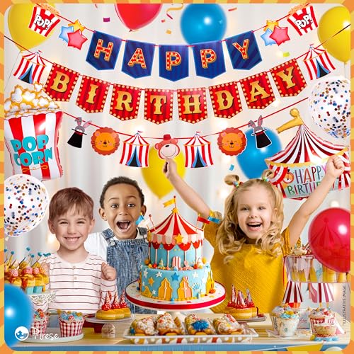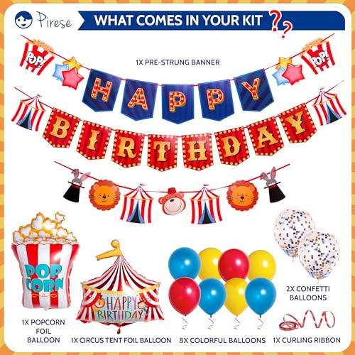 Carnival Party Decoration Kit | Circus Banner, Balloons & Cake Topper