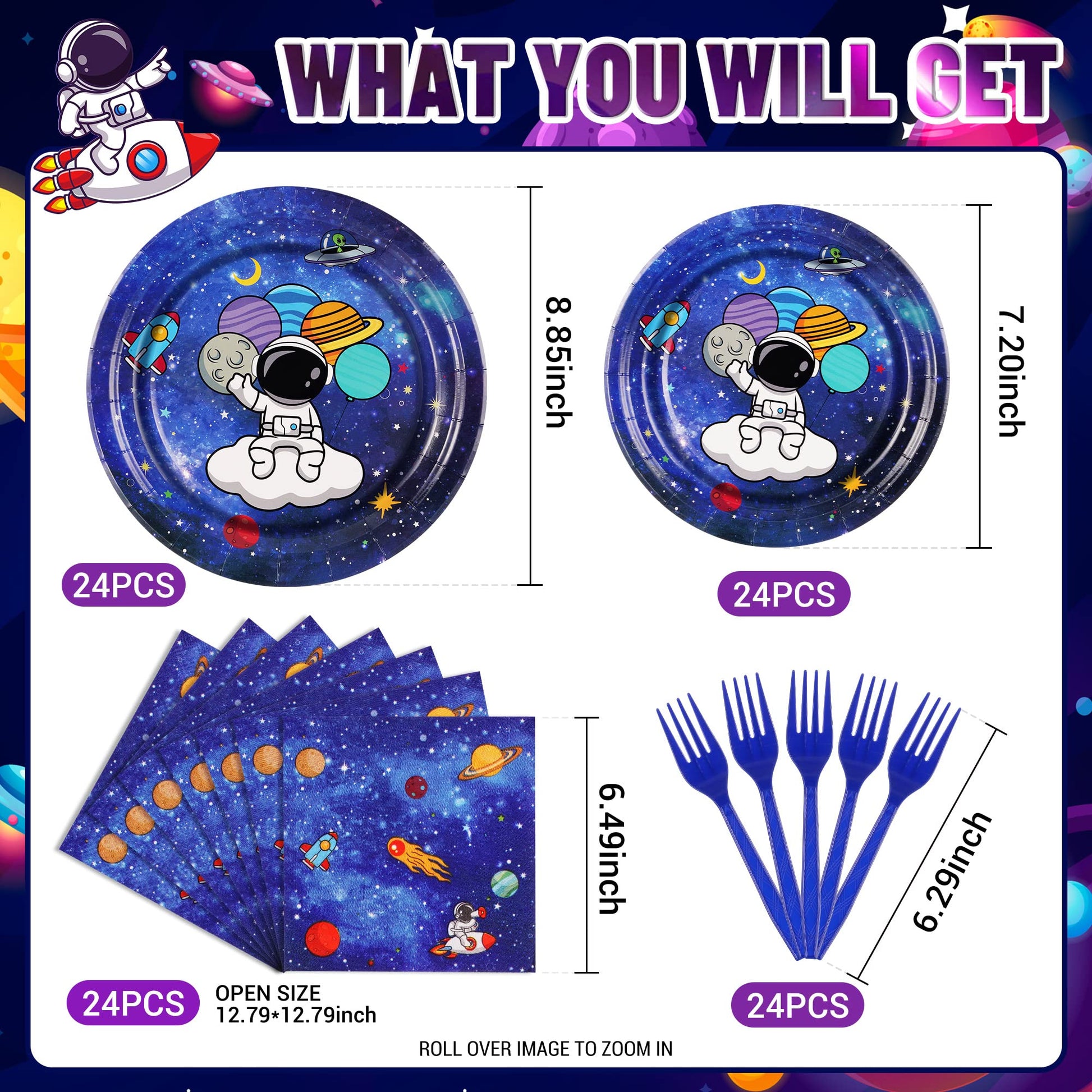 Space Party Tableware Set | 96-Piece Galaxy Birthday Kit for 24 Guests