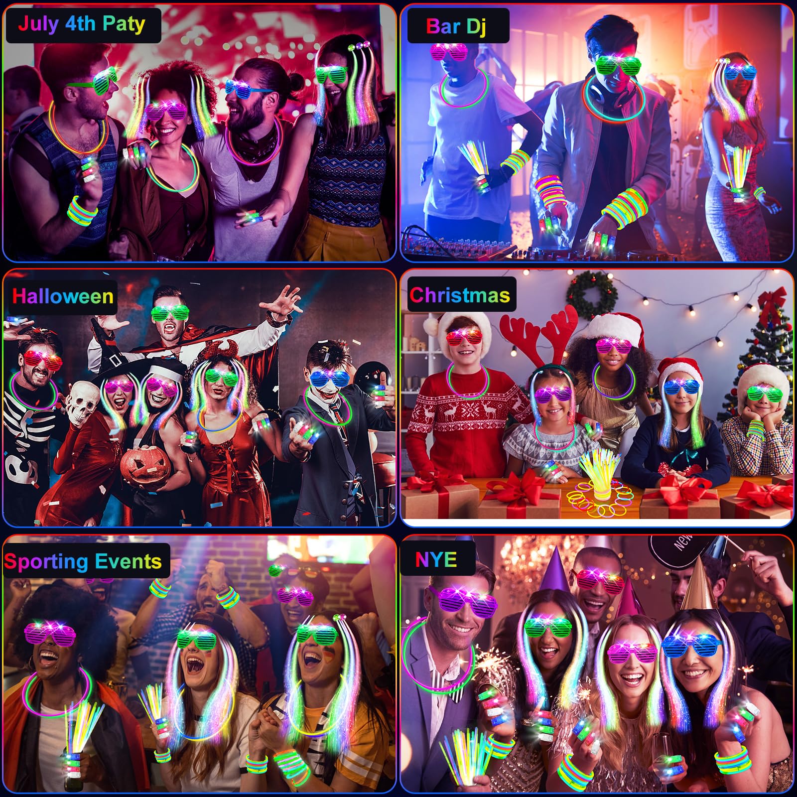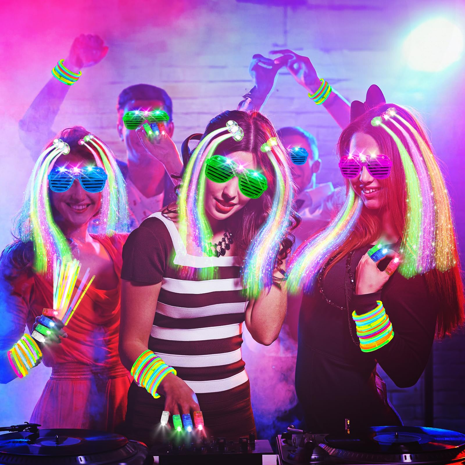 π 158-Piece Glow Party Mega Set β LED Glasses, Finger Lights, Hair Clips & 100 Glow Stick Bracelets